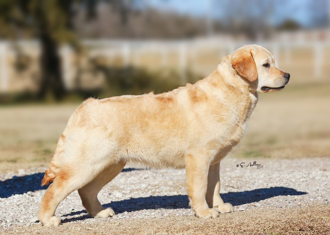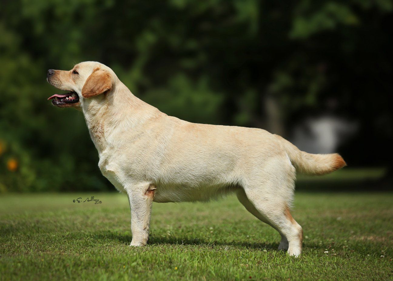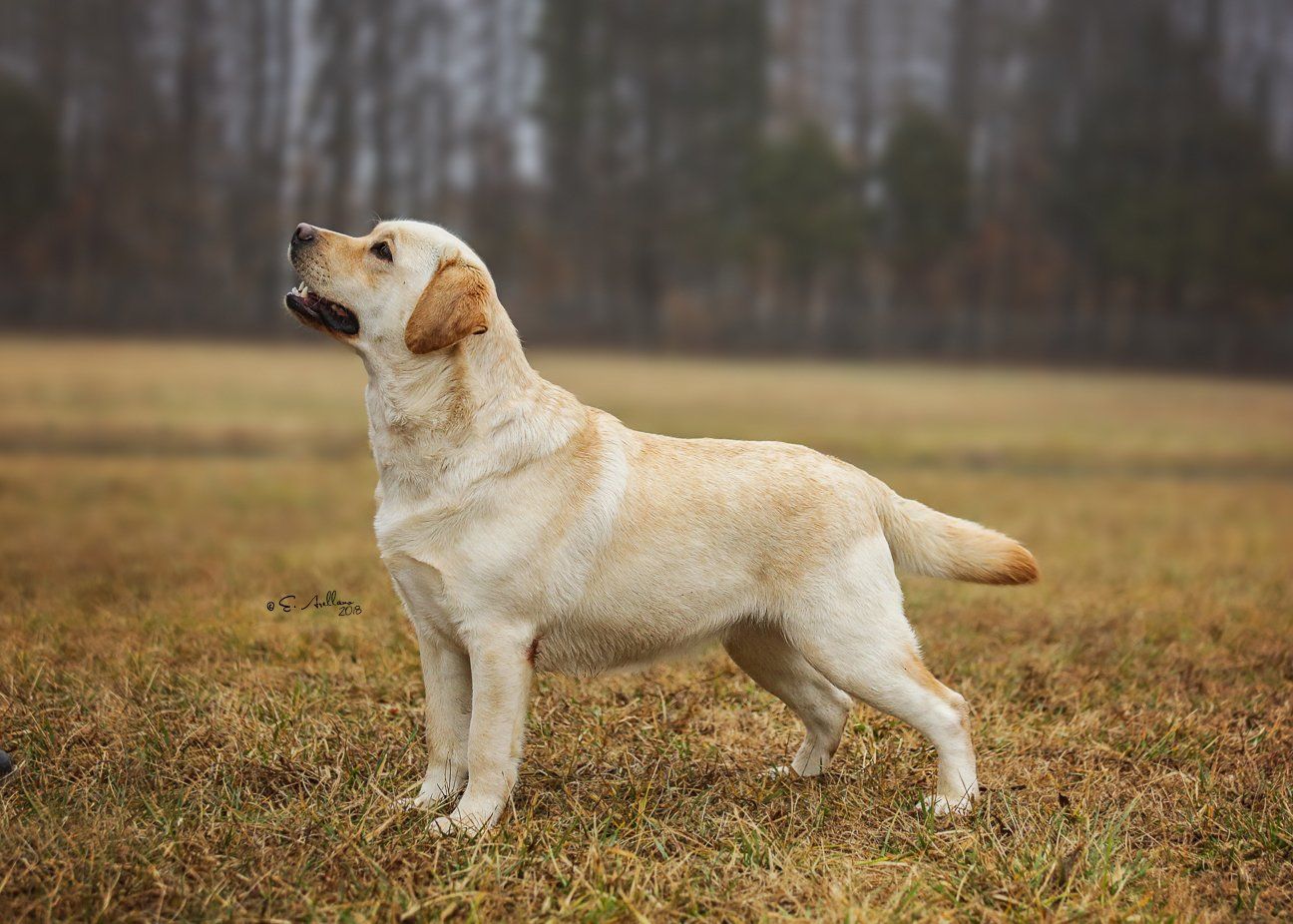 "Attractive yellow with pretty head and correct eye colour. Deep through body with good lay of shoulder. Well angulated hind quarters. Shown in good coat and condition. Moved well."