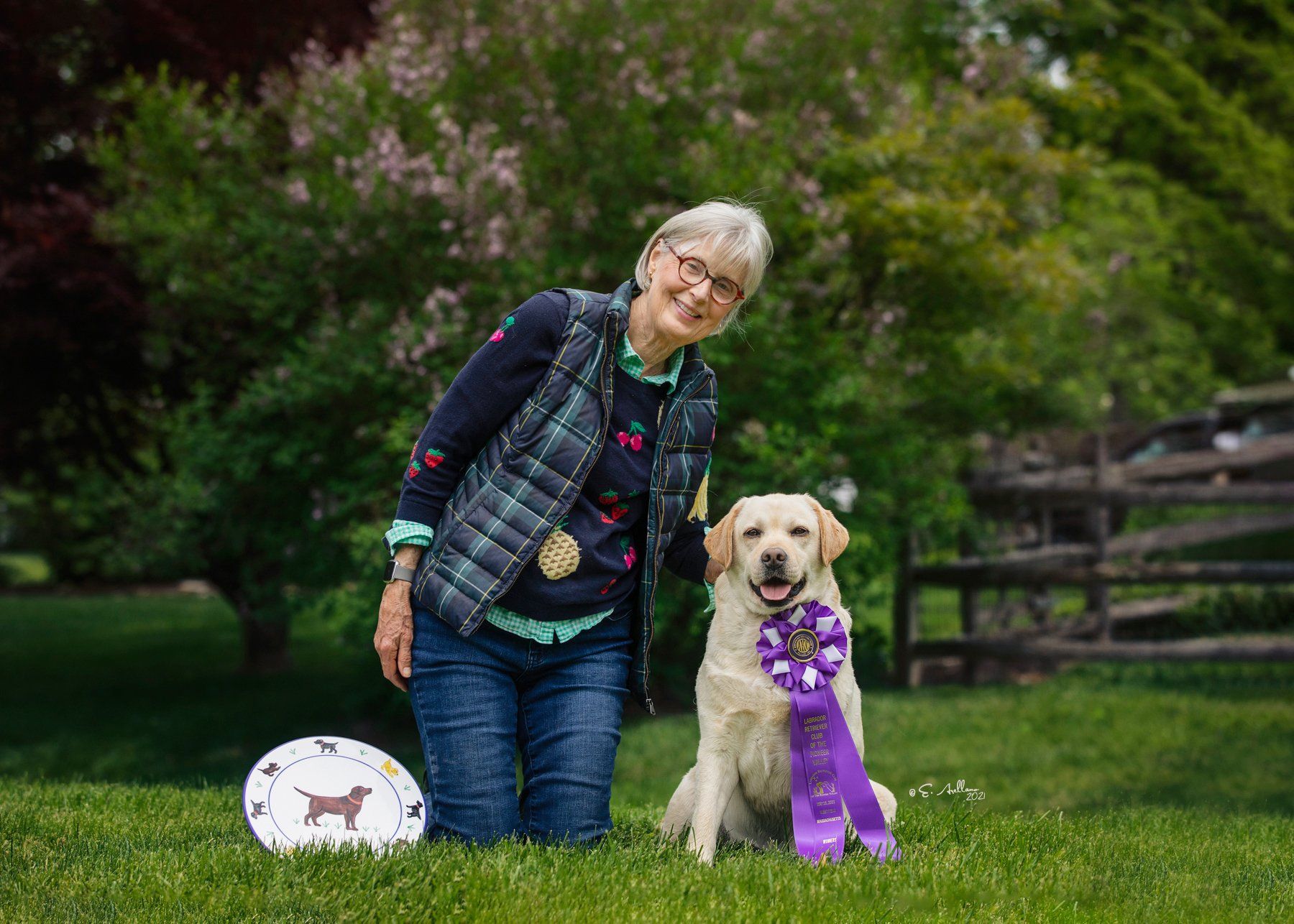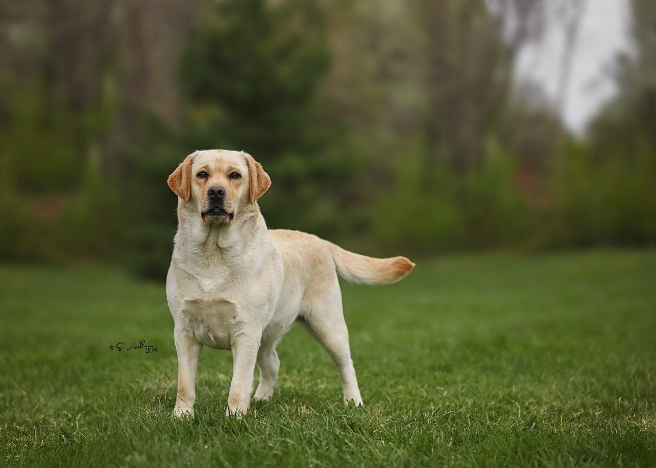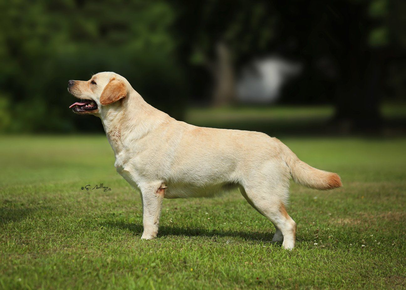 "Attractive yellow with pretty head and correct eye colour. Deep through body with good lay of shoulder. Well angulated hind quarters. Shown in good coat and condition. Moved well."
